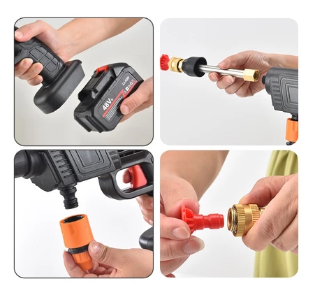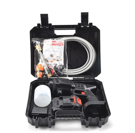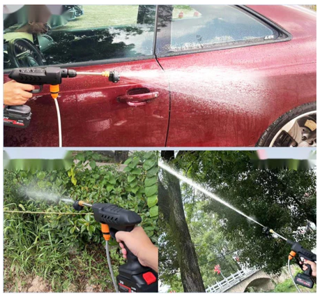 La Lavadora de Presión Portátil Inalámbrica cuenta con batería recargable integrada, permitiéndote limpiar sin cables ni necesidad de conexión eléctrica. Ideal para exteriores, garajes, jardines, viajes, camping o zonas donde no hay toma de corriente.